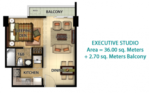 Choose between executive-studio units at approximately 40 sqm. and one-bedroom at 50 sqm.