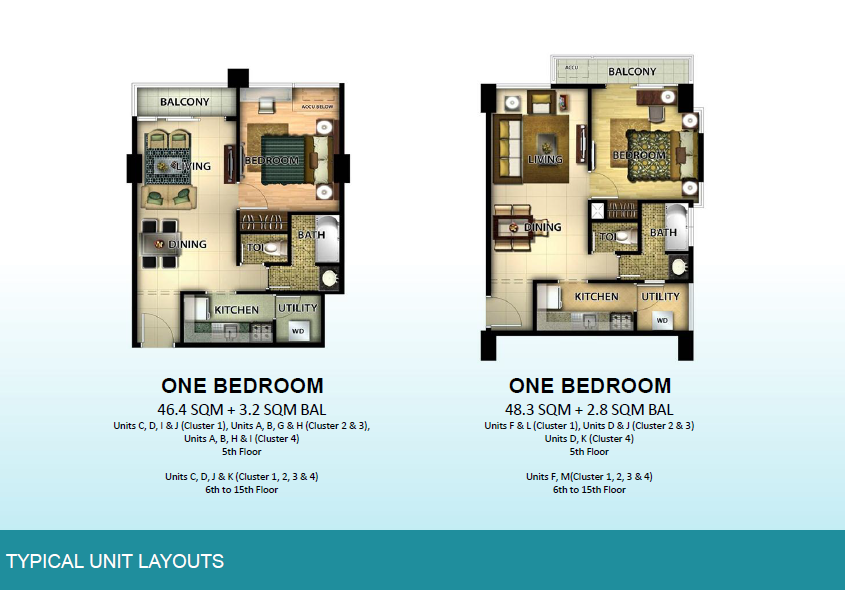 All units come with balconies so that the residents can enjoy the fresh sea breeze. Unit can also be combined to two or three bedrooms for bigger living spaces.