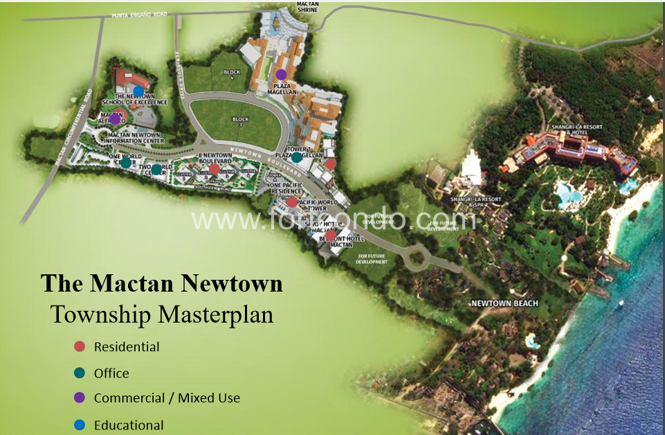 The township also features a Cyberpark,which is home to several office buildings like the recently completed One World Center that now houses an international BPO company Results Manila. Other BPO offices ib the townshio are Two World Center,Eight Newtown Boulevard, and Pacific Garder Tower. Boasting a redefined living experience in a township masterpiece,the company also brings condominium lifestyle highlighted by the spectacular views of the historic Mactan Shrine, Magellan Bay,and the Hilutungan Channel.