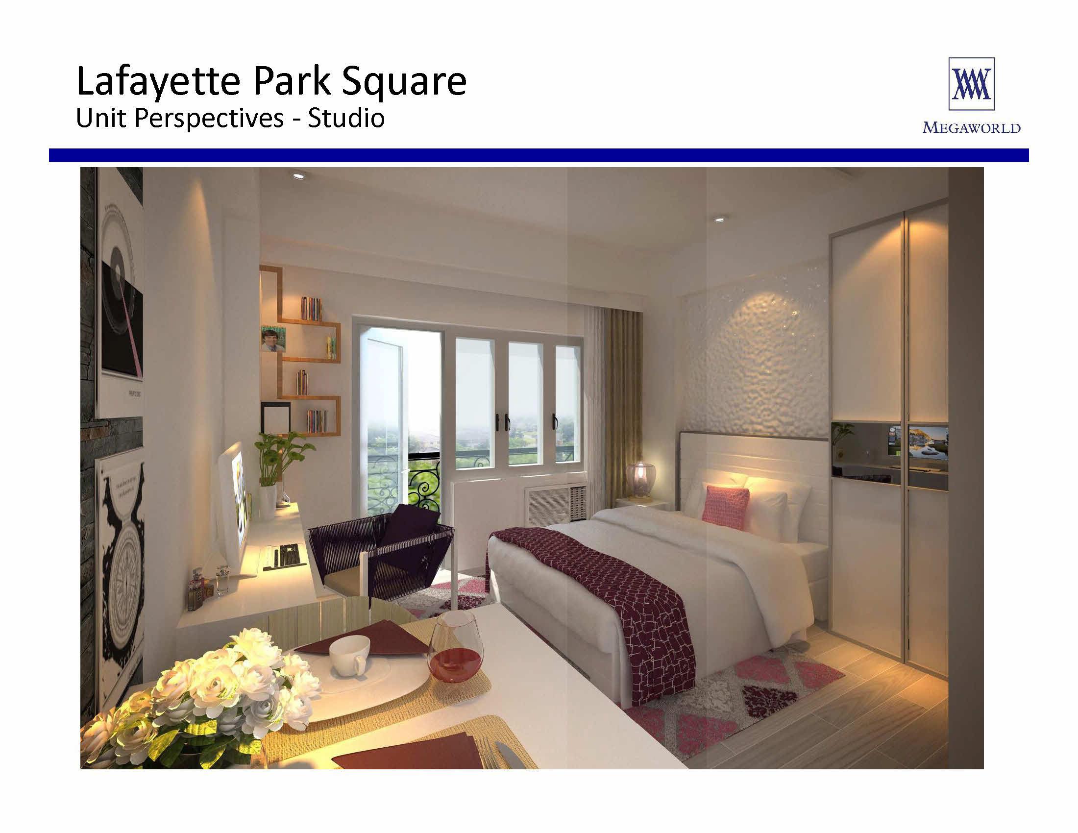 Synergizing French and Spanish architectural concepts, Lafayette Park Square is reminiscent of the majestic chateaus that dot the border of Western Europe, evoking charm and elegance that perfectly match the discriminating taste of Ilonggos. The 14-story residential condominium tower will be home to over 289 units with layouts that range from studio to three- bedroom units.